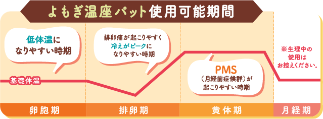 A.よもぎ温座パットは、専用のパットと発熱体を使用しておりますので、市販のカイロやナプキンとの併用・代用は絶対におやめください。
